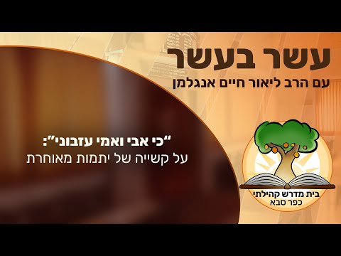 עשר בעשר: 'כי אבי ואמי עזבוני' - על קשייה של יתמות מאוחרת | הרב ליאור חיים אנגלמן