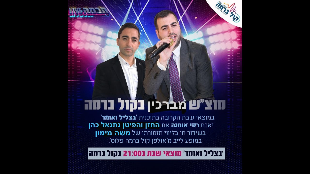 שבת מברכין בצליל ואומר רפי אוחנה מארח את גדול הפייטן והחזן רבי נתנאל כהן בליווי התזמורת של משה מימון