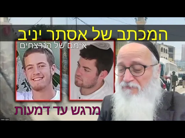 המכתב של אסתר יניב, אימם של הלל ויגל הי"ד שנרצחו בפיגוע בחווארה. על שני משלוחי מנותיה לה', שני בניה!