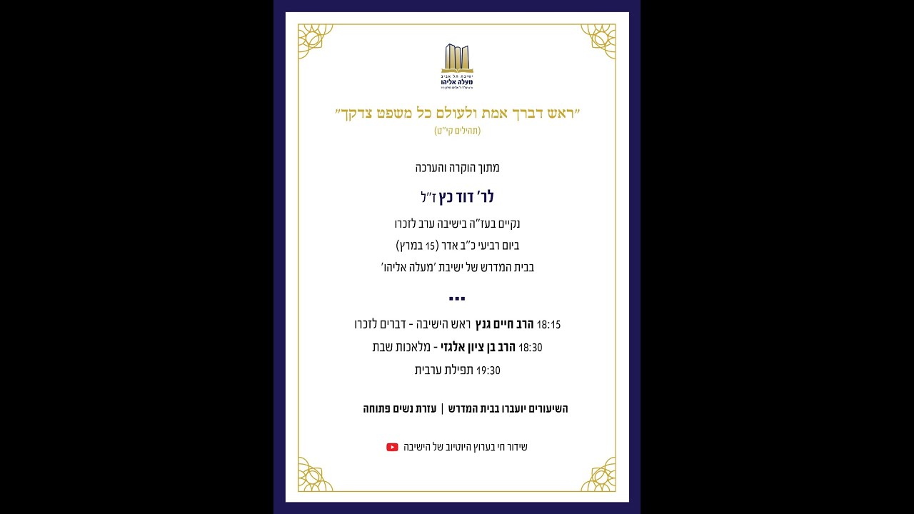 ערב אזכרה והוקרה לר' דוד כץ | תשפ"ג