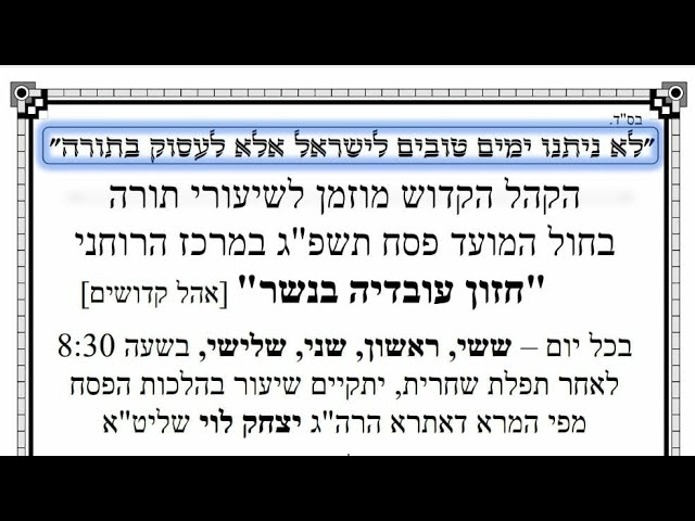 חלק ב | שיעורי תורה מבית מדרש חזון עובדיה נשר | פסח תשפ"ג