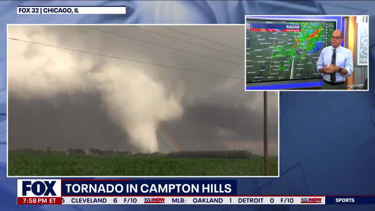 קשת מאחורי טורנדו סופות טורנדו מרובות נוגעות ליד שיקגו _