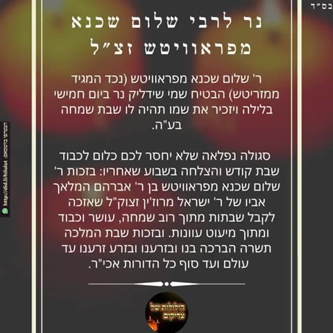 הדליקו נר 🕯️ לזכות הצדיק רבי שלום שכנא מפרוביץ׳ זיע"א הילולות של צדיקים🔥✨