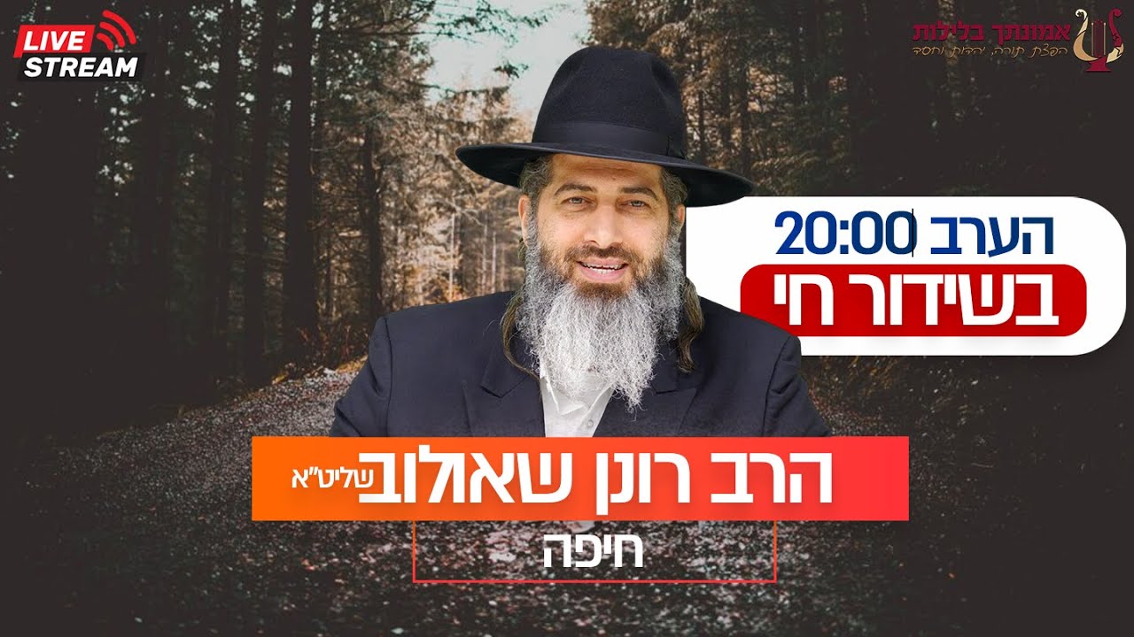 אחרי השיעור הזה אתם תצאו מעצבות לשמחה!! הרב רונן שאולוב השיעור מיוחד הערב בשעה 20:00 בשידור חי מחיפה