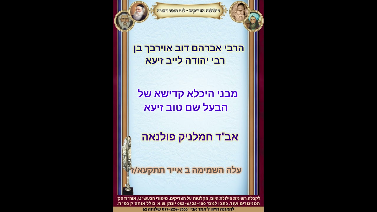 הילולות צדיקים ה באייר הרבי אברהם דוב אוירבך בו רבי יהודה לייב זיעא אב"ד חמלניק פולנאה