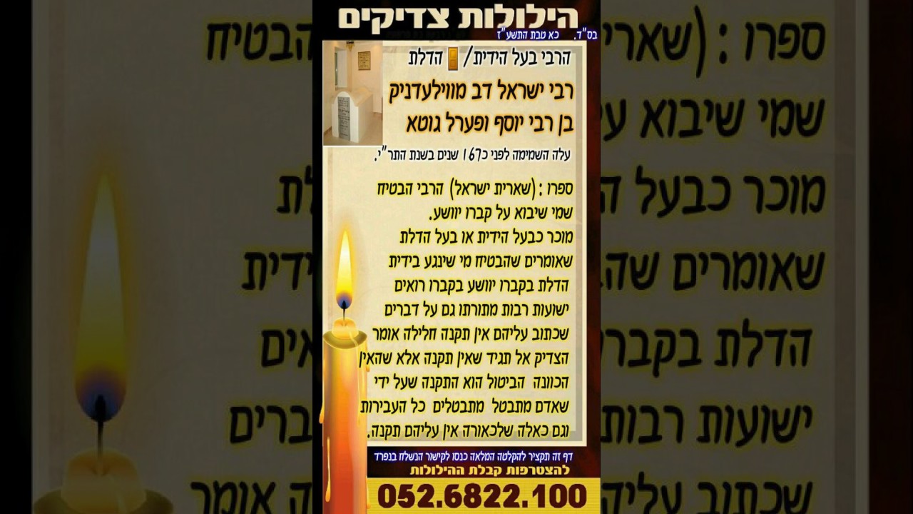 הילולות צדיקים - כא' טבת רבי ישראל דב מווילעדניק בעל הידית