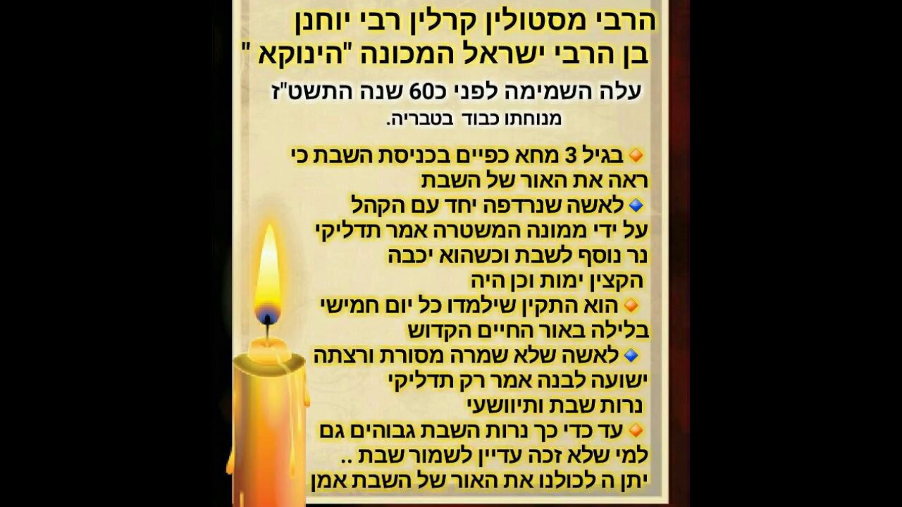 הילולות צדיקים - כא' כסלו הרבי מסטולין קרלין רבי יוחנן