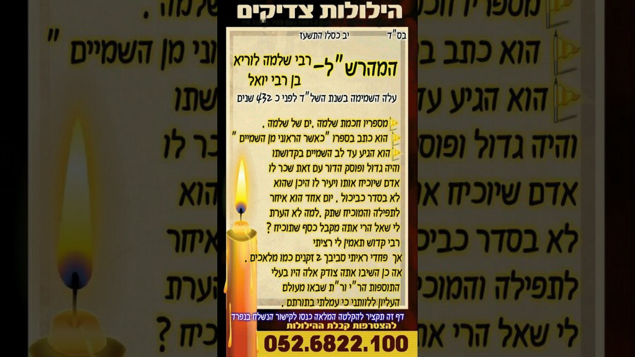 הילולות צדיקים - יב' כסלו המהרש"ל רבי שלמה לוריא בן רבי יואל