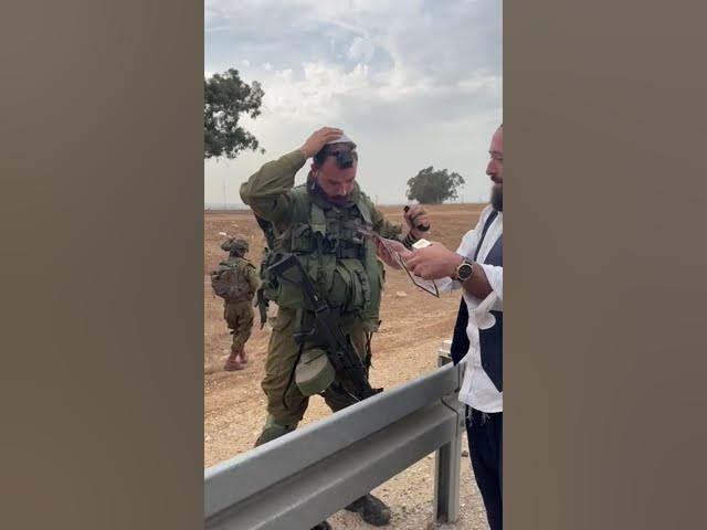 סיירת שלום לחייל עם חייל מניח תפילין על גבול עזה