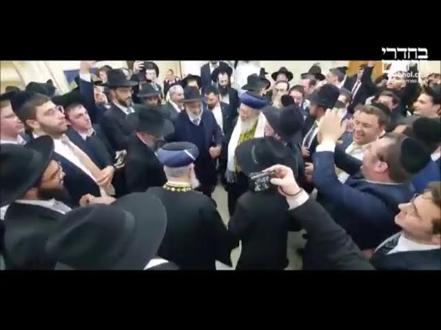 מרן הראש"ל פסה"ד רבנו יצחק יוסף שליט"א בריקוד עם רבה של ירושלים הגאון הגדול הרב שלמה משה עמאר שליט"א