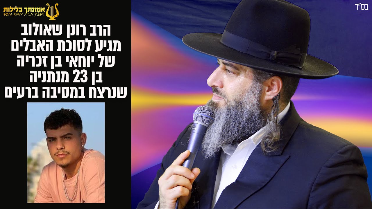 הרב רונן שאולוב בדרשה מרגשת עד דמעות בסוכת האבלים של יוחאי בן זכריה מנתניה הי״ד שנרצח במסיבה ברעים.
